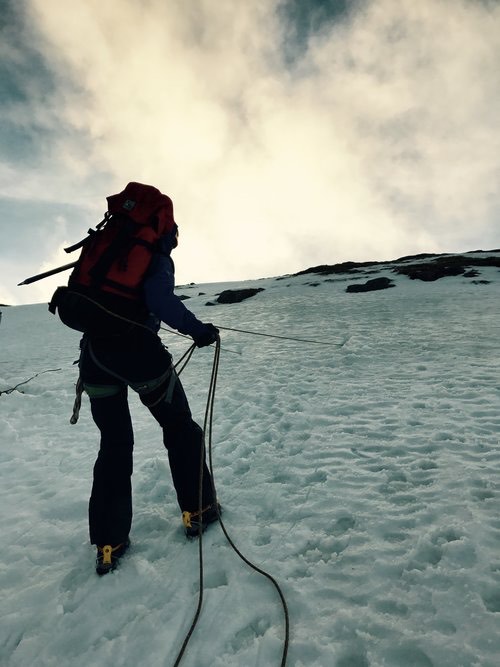 Perfecting the emergency abseil from a ‘Snow Bollard’.