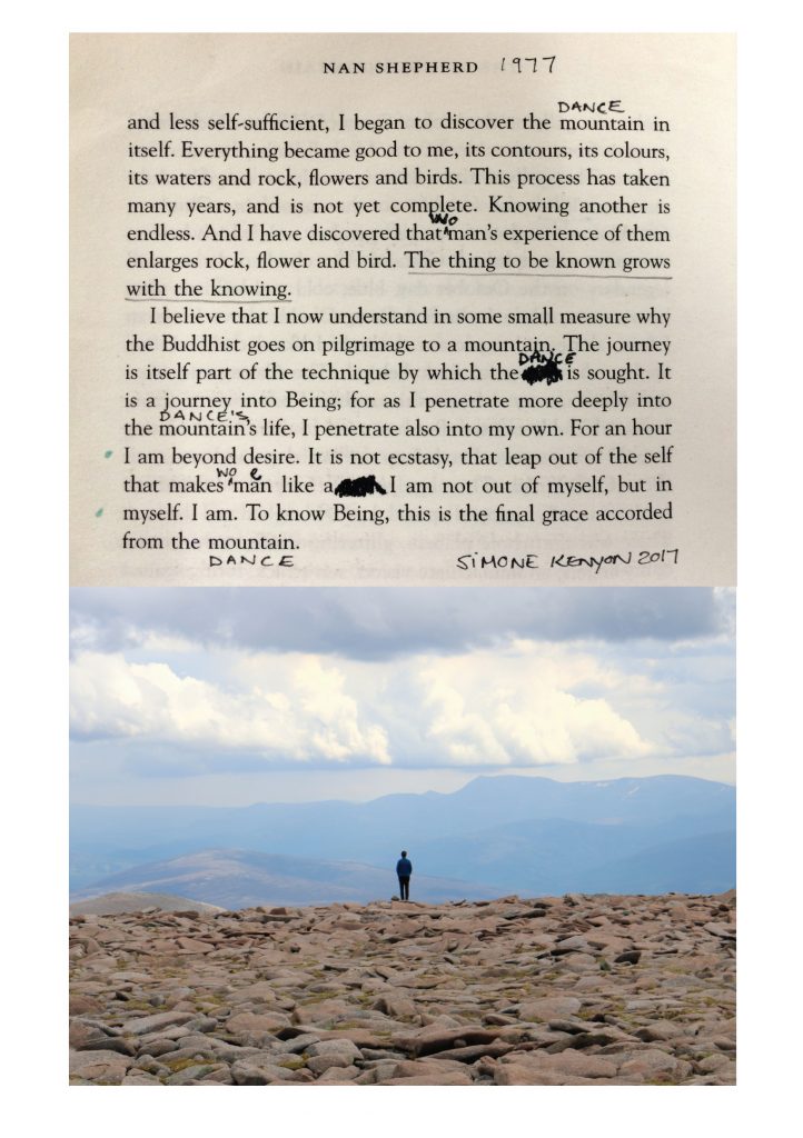 Into The Mountain (Solo) programme image and research notes. The performance explored the relationship between mountaineering experiences and dance improvisational strategies.